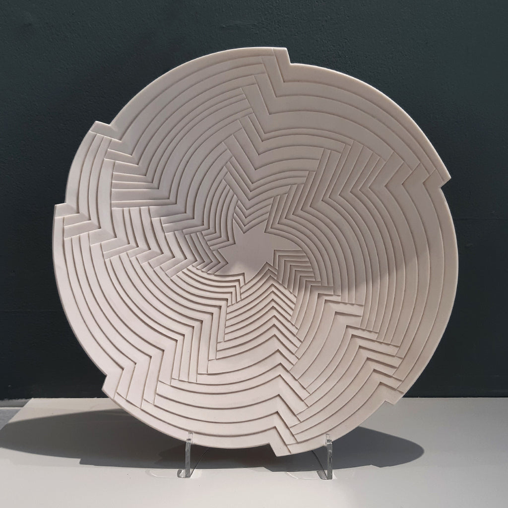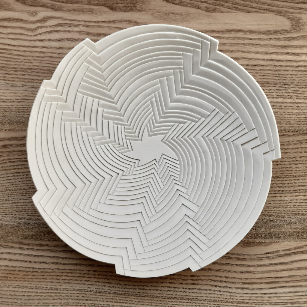 My latest wall pieces challenge the boundaries between horizontal and vertical imagery. Light and the interplay of translucency both internally and externally has manifested itself in these latest pieces. These transformative materials constantly beguile and challenges my ceramic practice as a maker." - Alan Whittaker