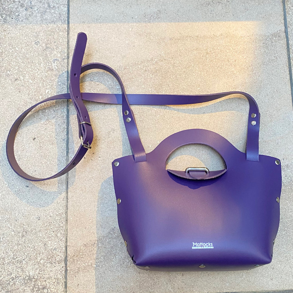 A beautiful purple large Delaunay leather bag by Lee Mattocks.