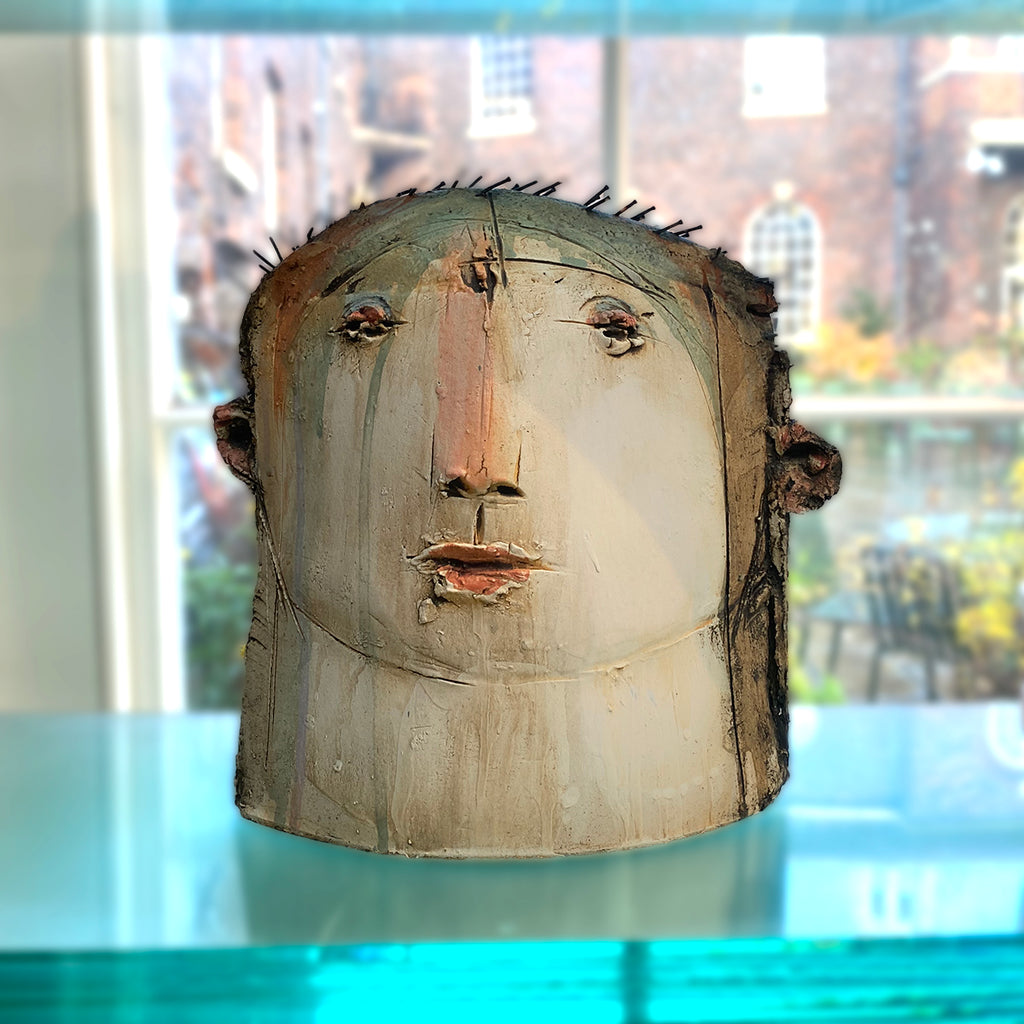A distinctive and unique Large Round Head sculpture by Christy Keeney.