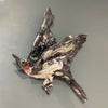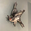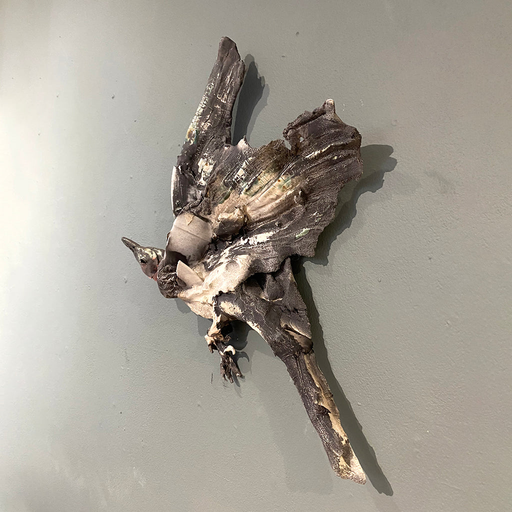 Ceramic swallow by sculptor Emma Rodgers, designed to be hung on a wall with a hook attached to the back.