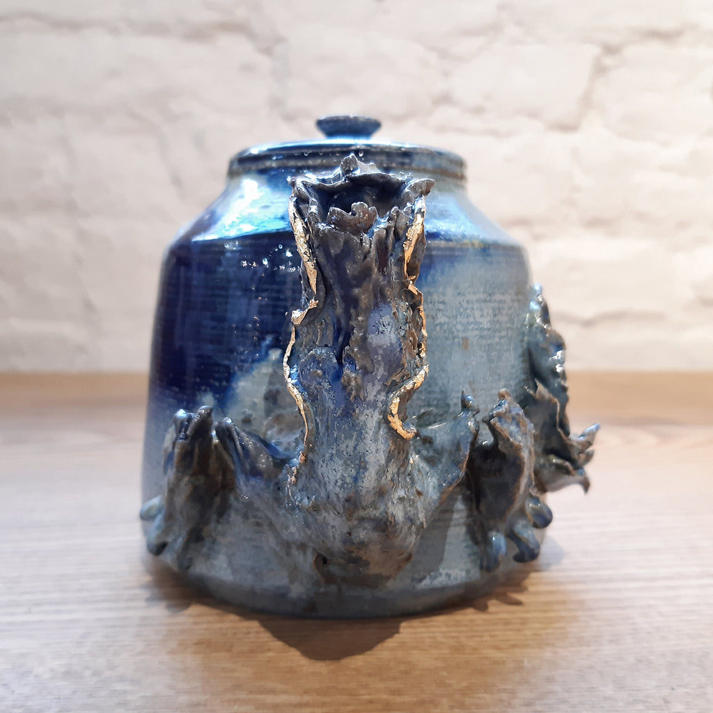 “My work is a combination of wheel thrown and figurative vessels that are heavily based around my cultural background and heritage. My ceramics are soda fired in a gas kiln which reaches a top temperature of 1300c this process allows me to achieve a range of deep colours and surface textures unachievable in an electric kiln.