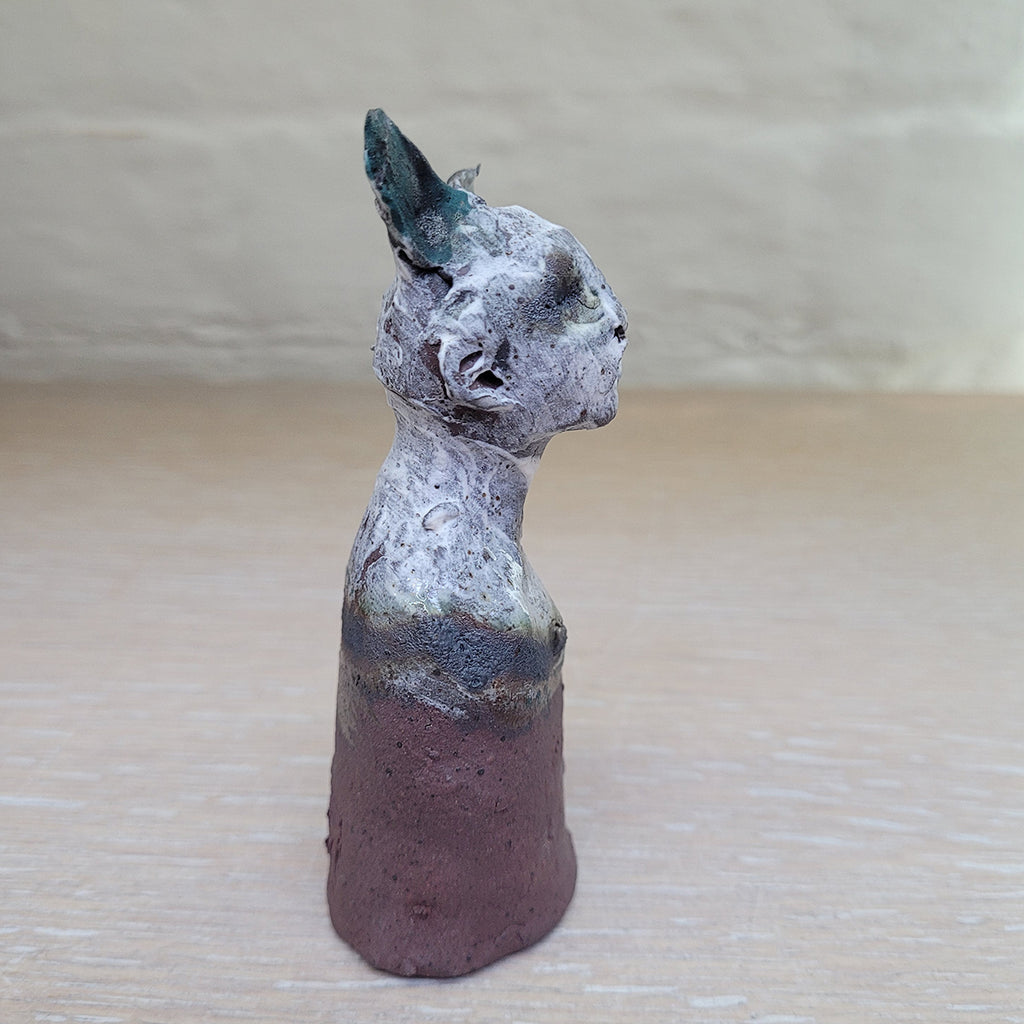 Miniature Faun Head by Sharon Griffin is made from ceramic stoneware. Miniature figure with large 'listening ears' loosely inspired by creation stories, from folklore and directly from the Ercal and Wrekin ancient woodlands in Shropshire. Each faun head is made uniquely so no two are ever the same design.