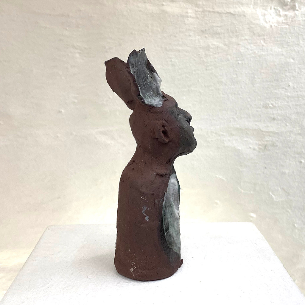 Miniature Faun Head by Sharon Griffin is made from ceramic stoneware. Miniature figure with large 'listening ears' loosely inspired by creation stories, from folklore and directly from the Ercal and Wrekin ancient woodlands in Shropshire. Each faun head is made uniquely so no two are ever the same design.
