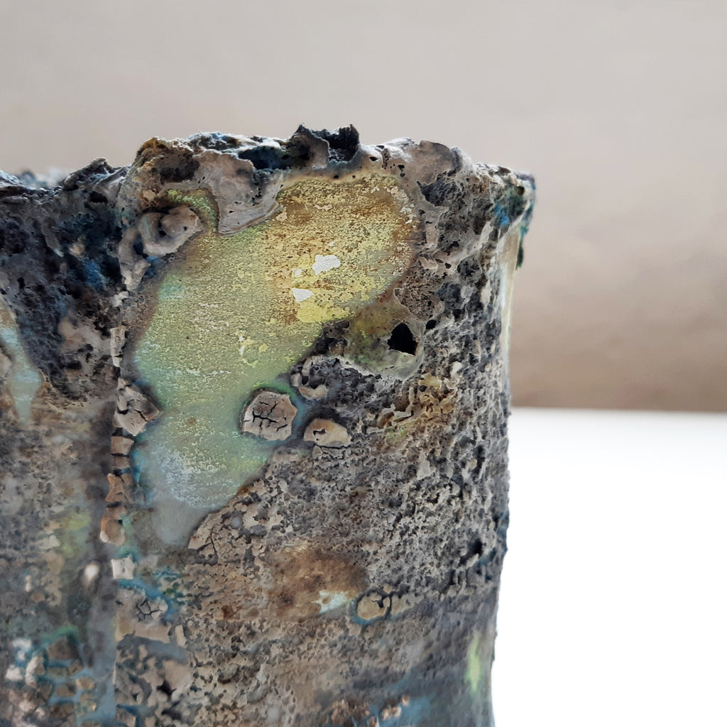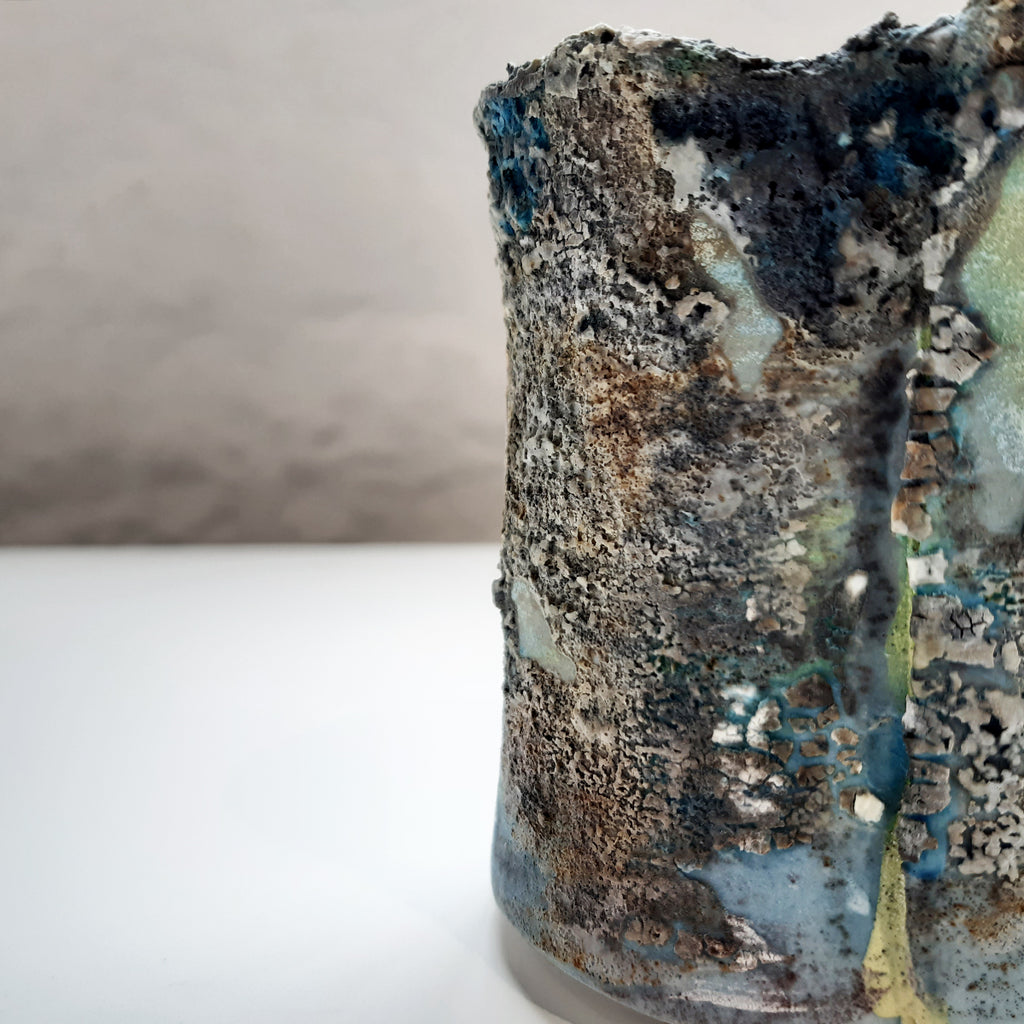 "In areas they unite, fluxing together and in others, the glazes crawl, peel and pull away from the body revealing multiple layers and the body beneath. Embracing the imperfect and those qualities that would otherwise be considered faults, allows for expression through the materials themselves and their interactions." - Paul Wearing