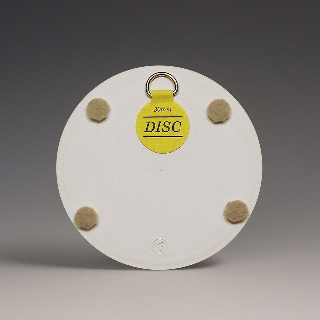 Part of a series of woodland creature designs, this wall hanging has been thrown on the wheel by Tiffany using a very white stoneware clay and while it’s still damp coloured clay slips have been applied to the surface through a handmade stencil.