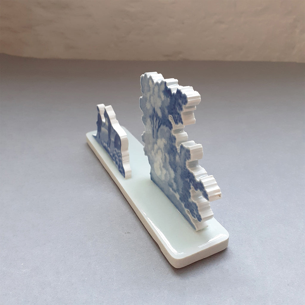 Details of old willow patterns are naturally slightly abstracted on editing, but an invitation to create an installation for Cheeseburn Sculpture Park in Northumberland brought the work into a clear focus. These works form part of my ongoing interest in gardening, landscape and their relationships with print, transferware and text."