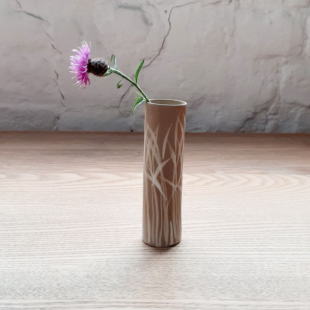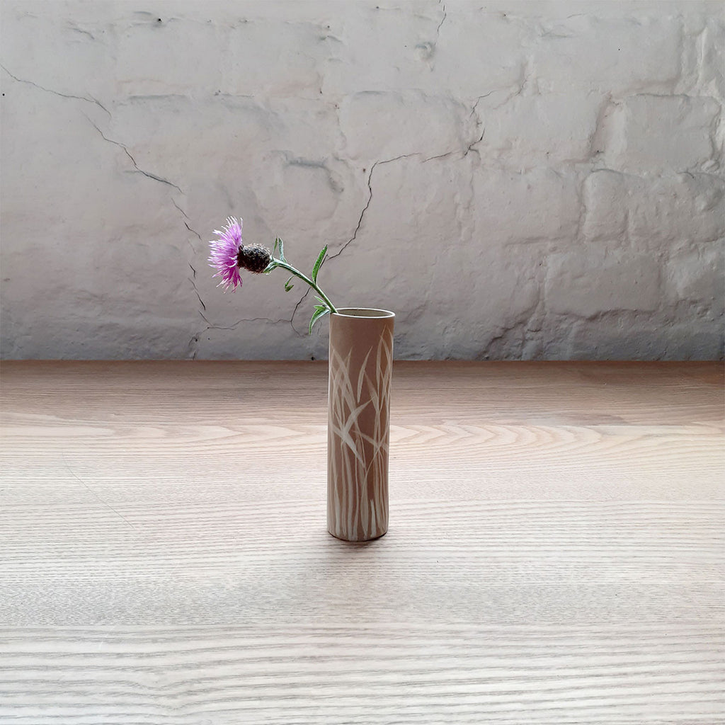 From a new collection of vases that have been made during an experimental phase of work. First developed when Reiko opened her London garden studio in 2019, the collection is inspired by, and decorated with, depictions of the flora that surround her.