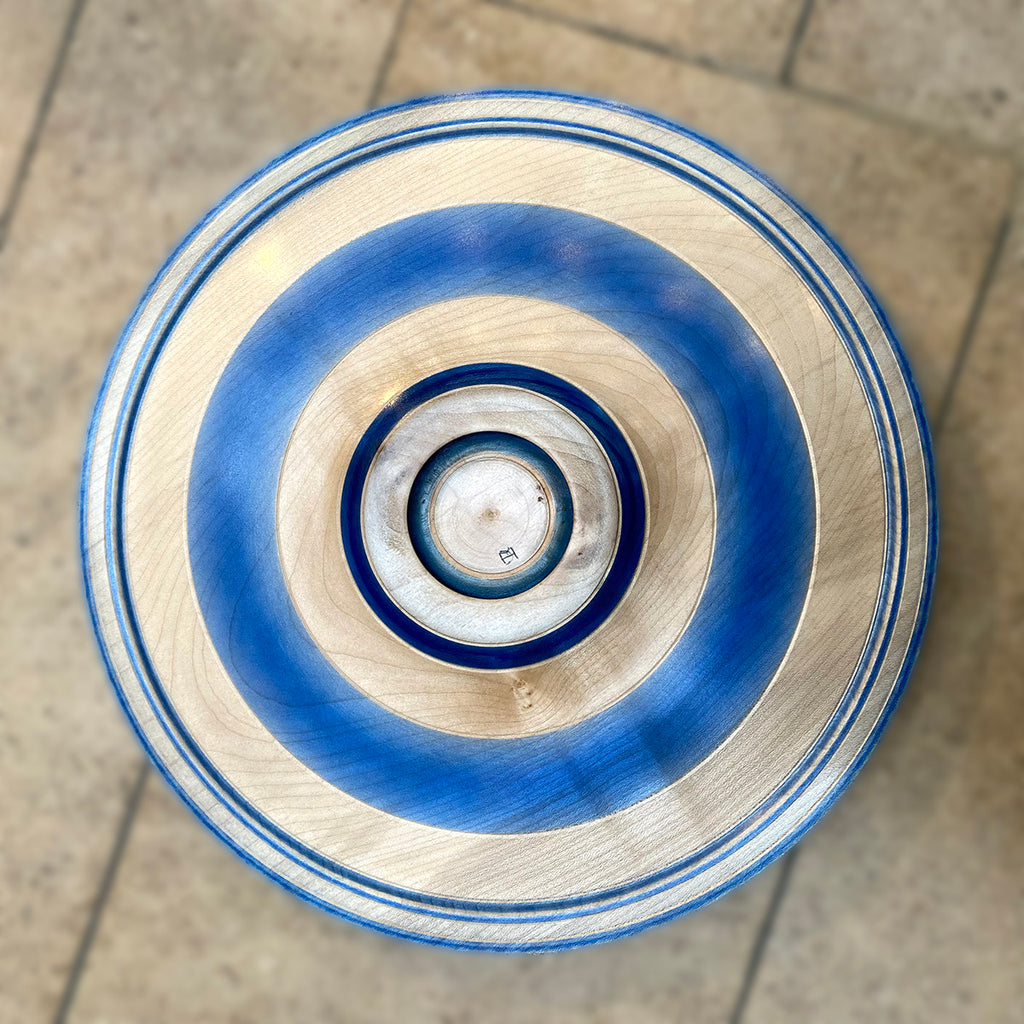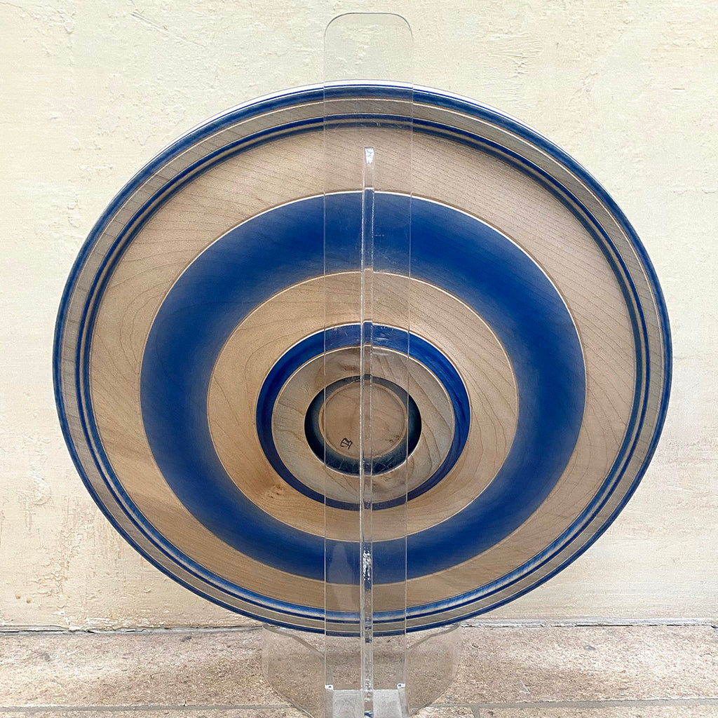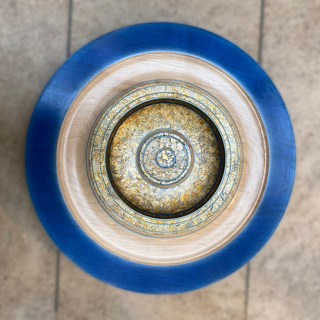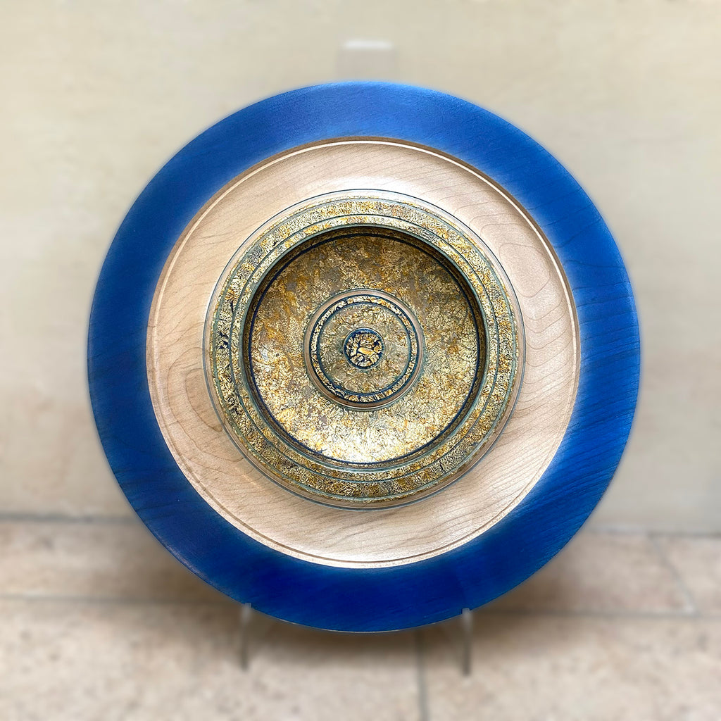 Blue & Gold Carved Wood Wall Plate by Dennis Hales