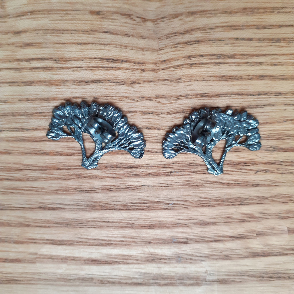 These unusual stud earrings are made from oxidised silver and resemble natural forms.