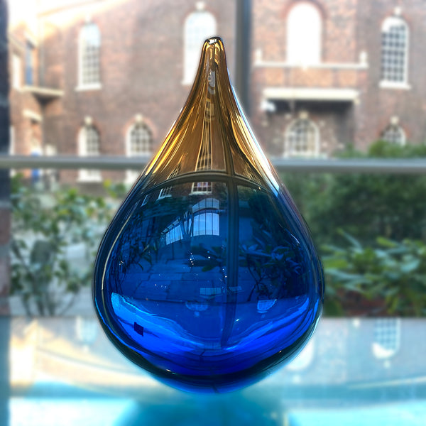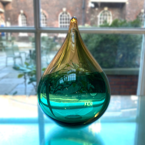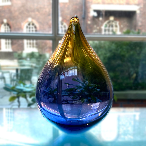 Elin makes hand blown and sand cast glass, and her designs are elegant, contemporary and tactile using Scandinavian forms in subtle colour blends. She often stretches or bends the glass to keep a sense of movement and to capture the intense energy when working with molten glass.