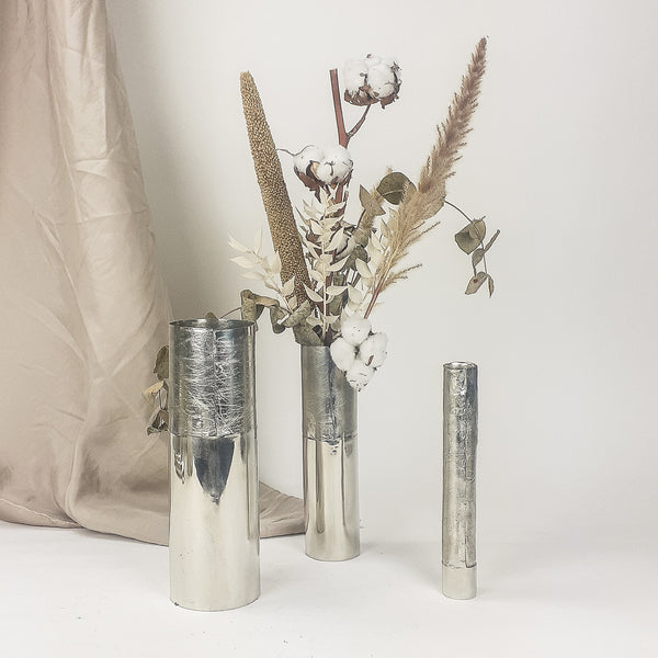 Inspired by the urban landscape of old buildings butted up to new developments and the chimney landscape of the northern mill towns she grew up in. Ella uses this inspiration to drive texture contrast in her work, stripping back embellishment to celebrate pewter.