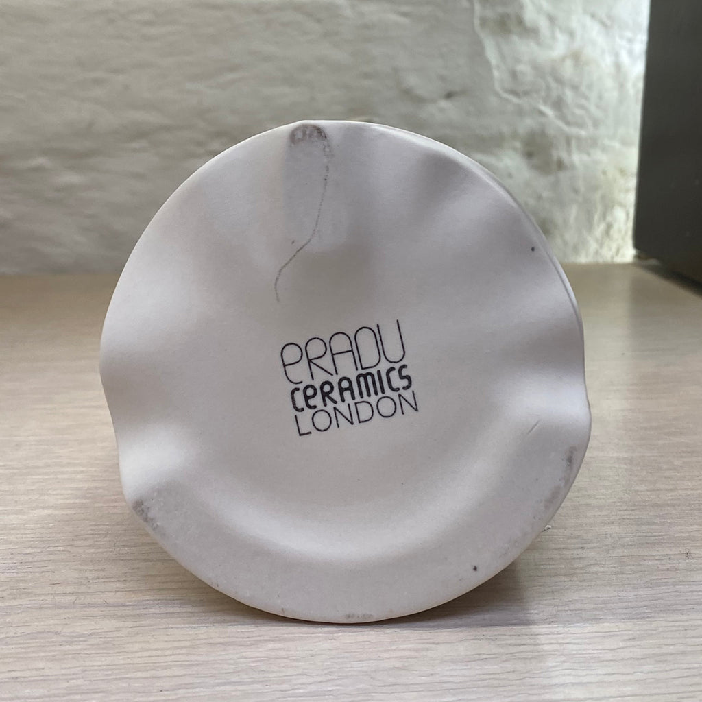 Eva Radulova is the designer-maker behind ERADU Ceramics. She works with porcelain, appreciating the possibilities for creating elegant colour variations with it. She uses slipcasting to make her works and seeks inspiration in the challenge of blending classic techniques with innovative design. Eva finds inspiration in Japanese prints like the Kanagawa wave. Developing new shapes is what fascinates her the most as part of creating and designing processes. She looks for new approaches when designing a form.