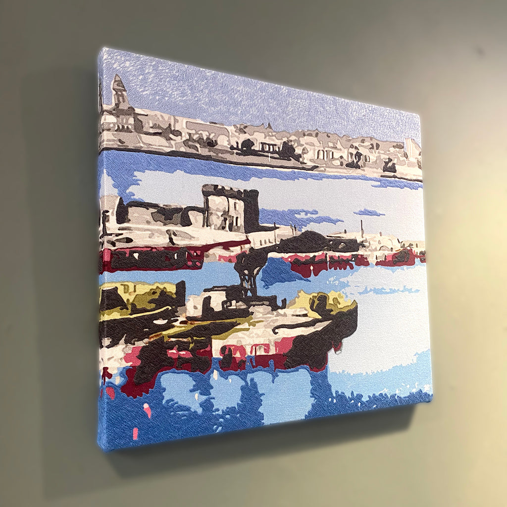 St Catherines Basin by Clare Lane is a remarkable textile work, meticulously stitched onto canvas and presented as edition 1 of 10. Drawn straight from our archive, this piece beautifully reflects Lane’s refined craftsmanship and her thoughtful exploration of texture, structure, and place.