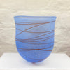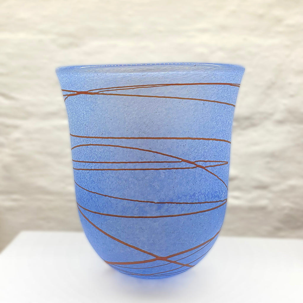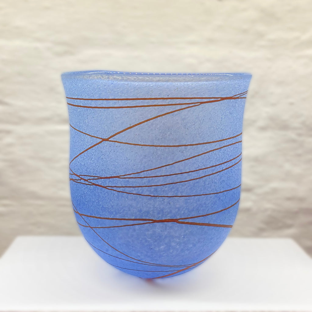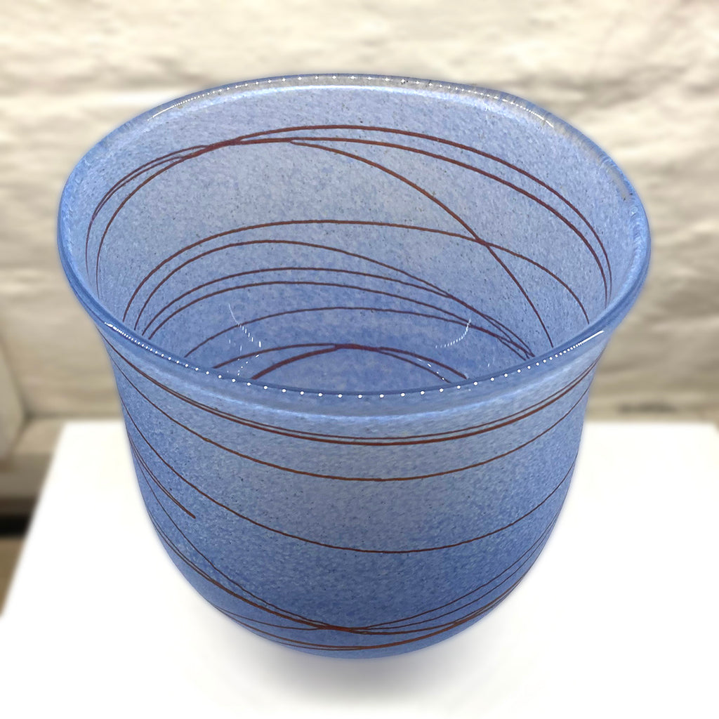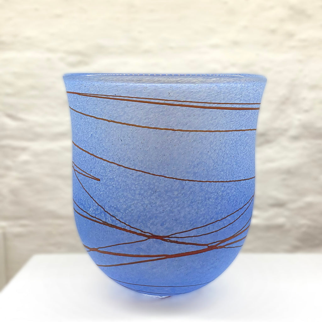 A medium open vase by contemporary glass artist Will Shakspeare. The piece is sky coloured with a lilac tint.