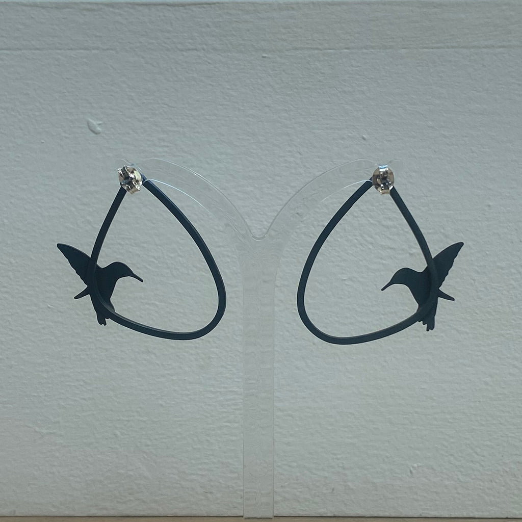 A striking pair of sterling silver large wing stud earrings and a silver kingfisher, part oxidised to create a two-tone ombré effect.