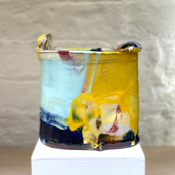 Thrown & Altered Vessel (Blue & Yellow) by Barry Stedman