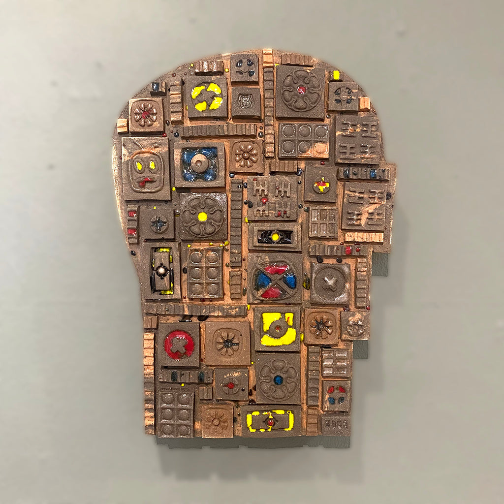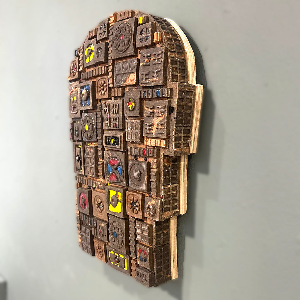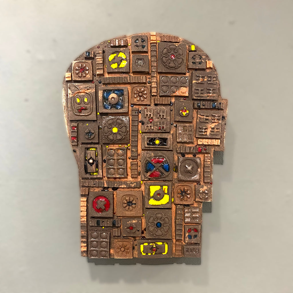 This beautifully detailed wall mounted ceramic mosaic with colourful glass inclusions is by local ceramicist and printmaker Pauline Hughes.