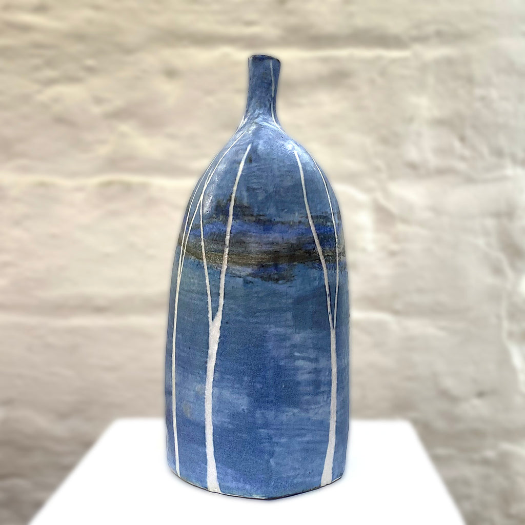 This Woodland Vase by Kirsti Hannah Brown is a unique vessle. Hand built stoneware vase, with a figurative form. The woodland design is based on winter trees.