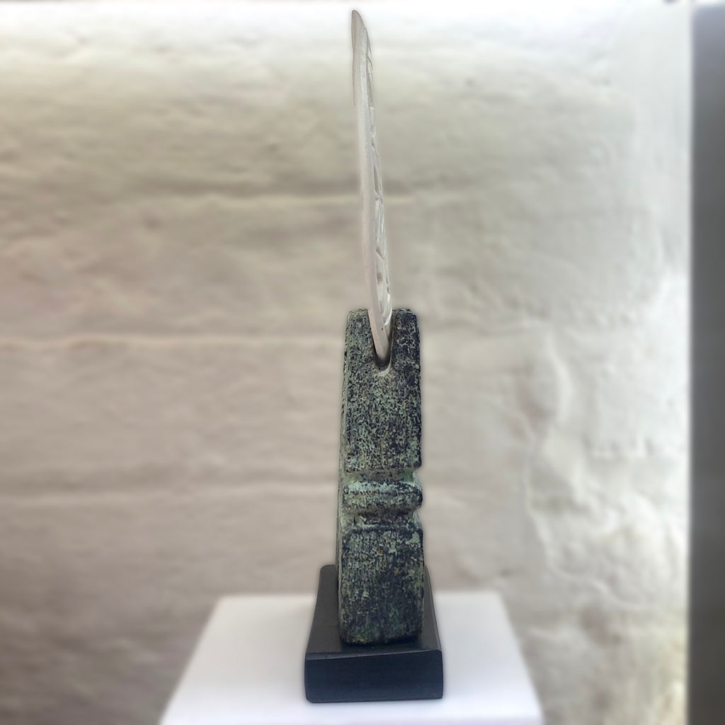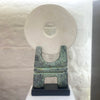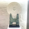 Small Etched Disc on Base by Peter Hayes, mounted on a ceramic base which has been cooled in sawdust which creates a jet-black finish. Signed by the artist.