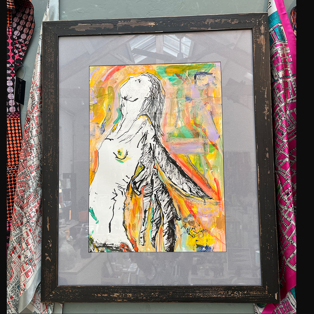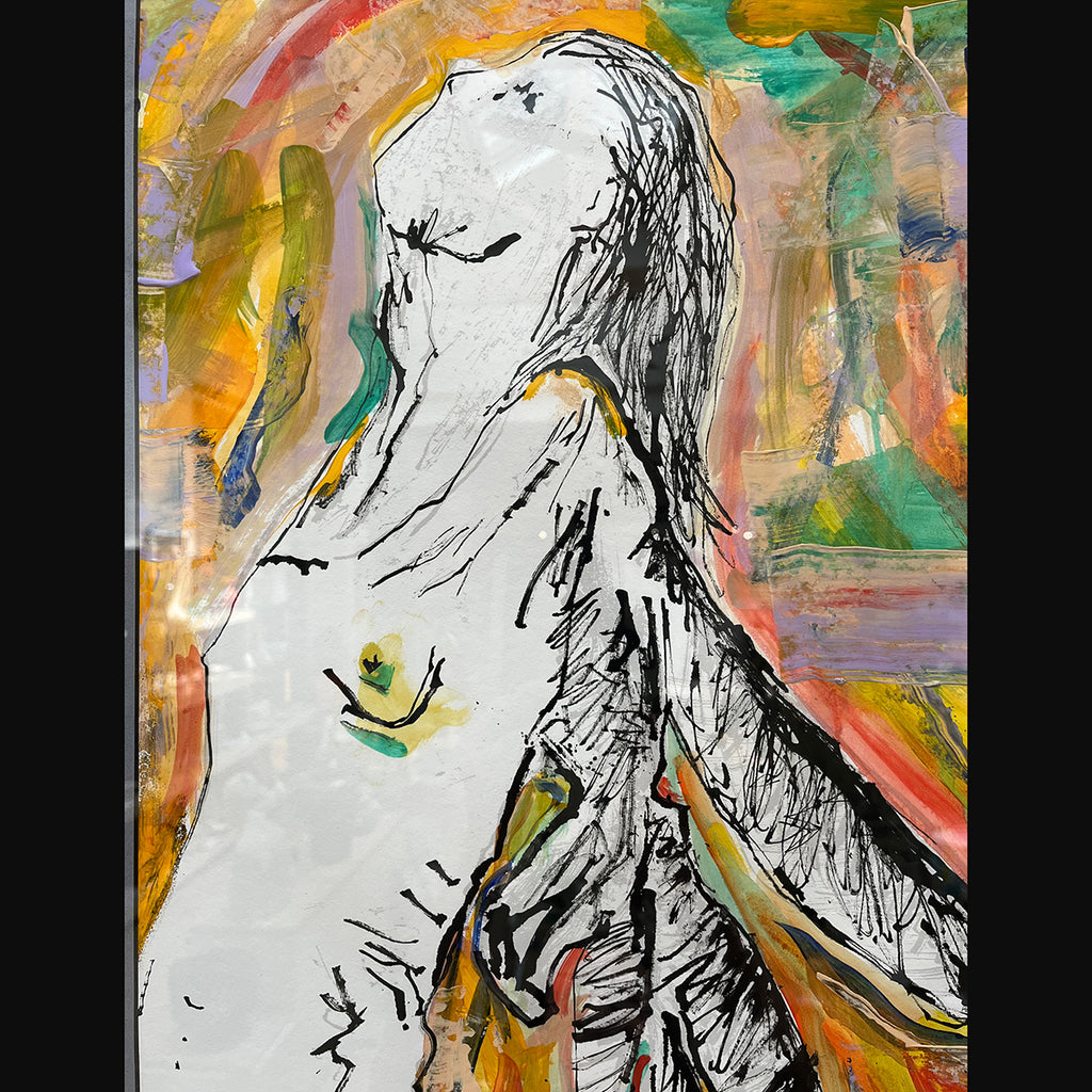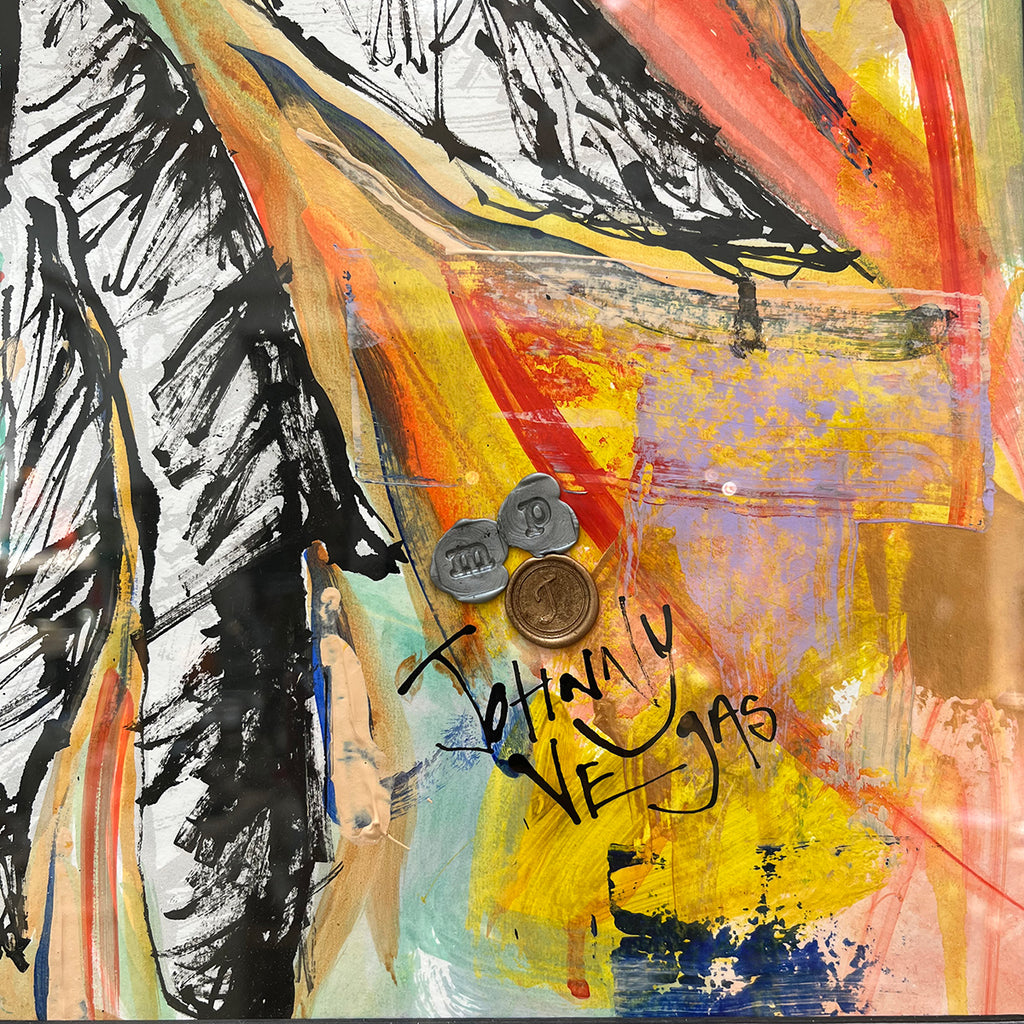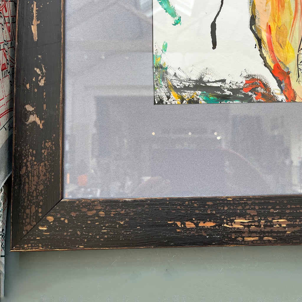Signed Limited edition 'pen and stick' print with hand-coloured acrylic background.