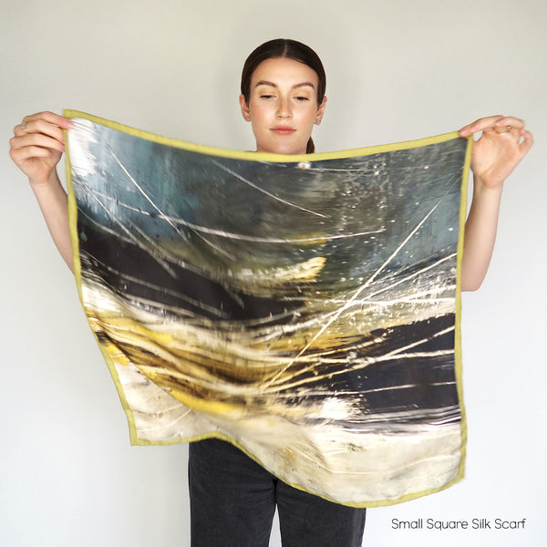 Inspired by nature, they create contemporary mixed media paintings and intaglio printmaking cast in plaster; exploring unique textures that translate beautifully on to their silk and cashmere art scarves, art cushions and little pouches. Each colour story is printed in more sustainable small batches, to create wearable art with a 3d-effect and signature chalky palette.