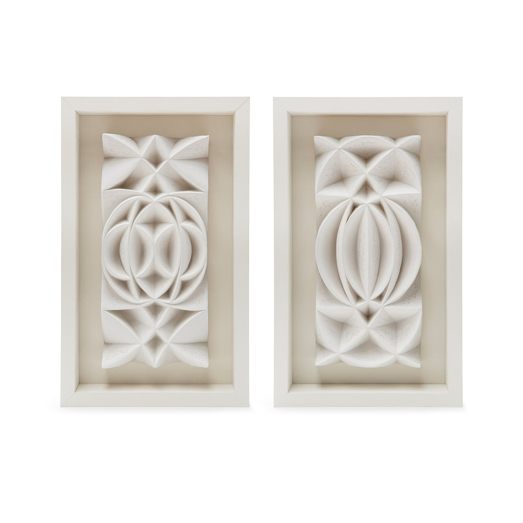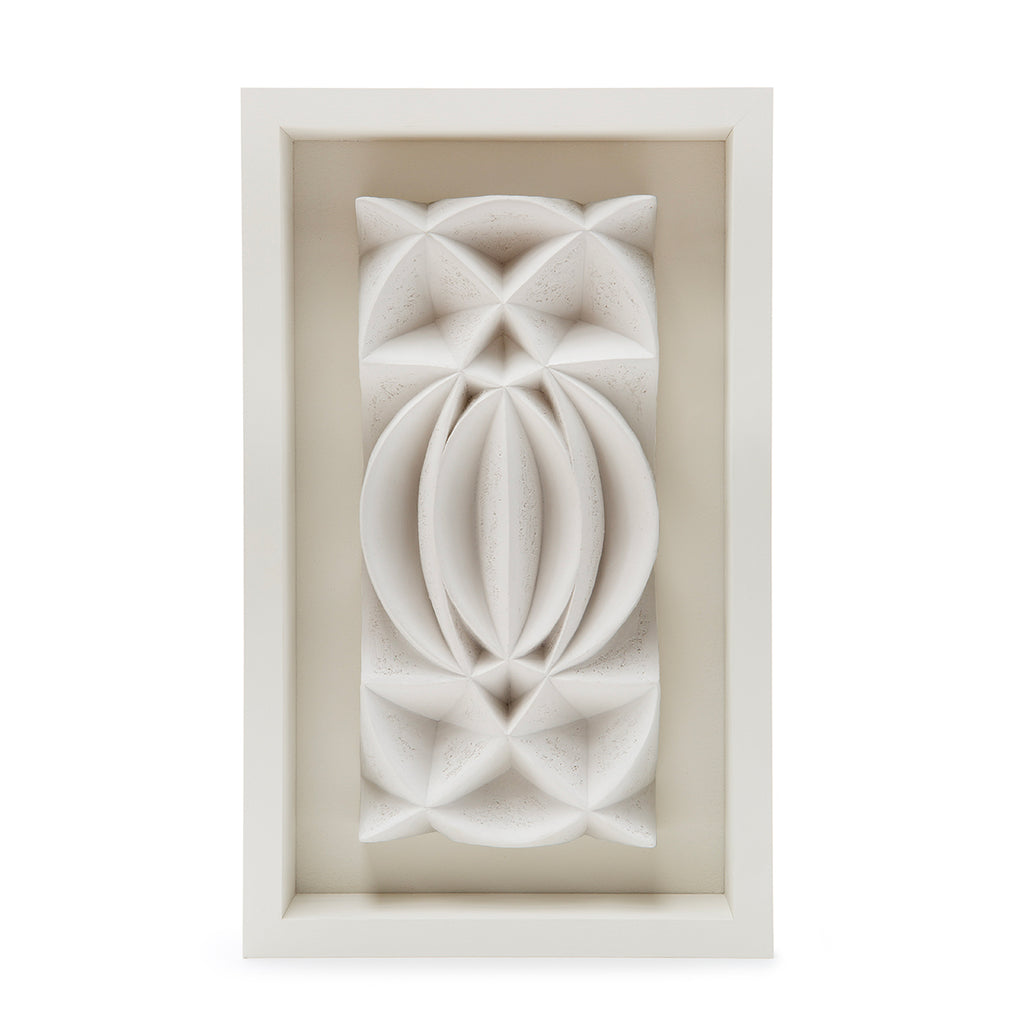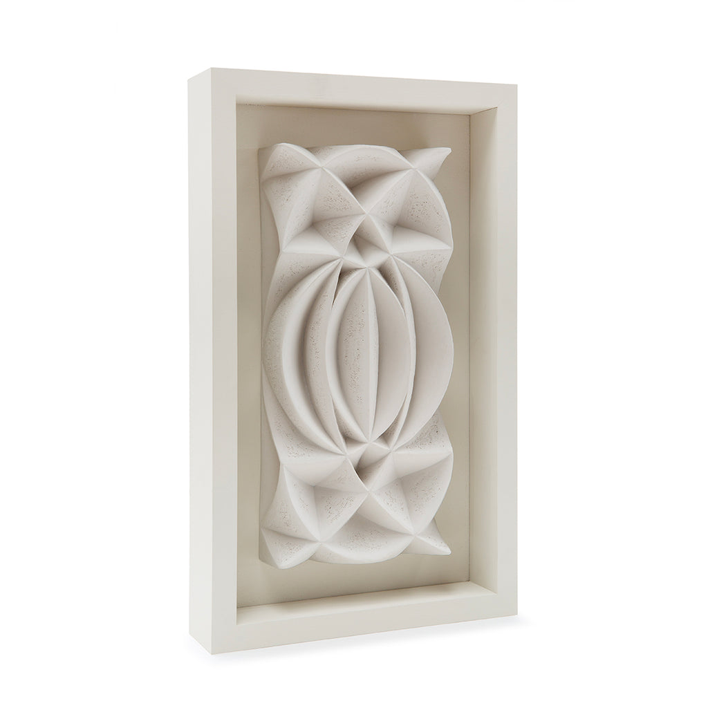 Hand cast in white jesmonite. Each piece is hand finished and hand polished, with a split batten wall fixing, and comes with a signed edition certificate.