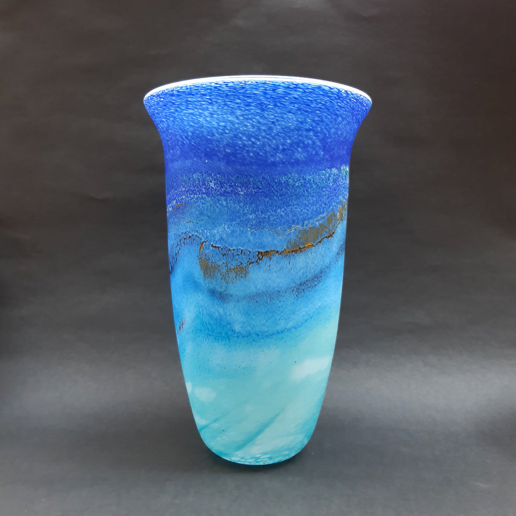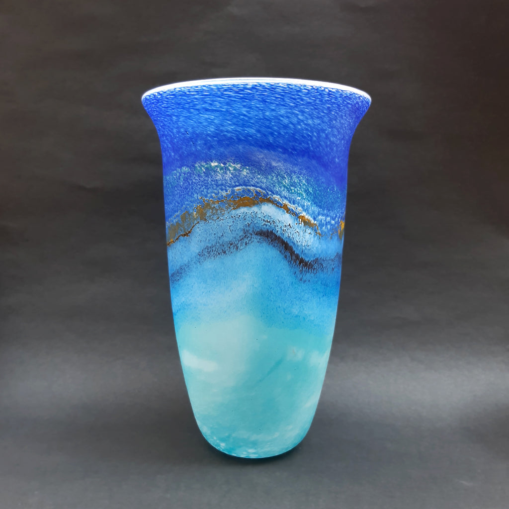 A large glass vase from Will Shakspeare's 'Coast' range, inspired by coastlines across the UK including the beautiful seas and skies of Tresco in the Isles of Scilly.