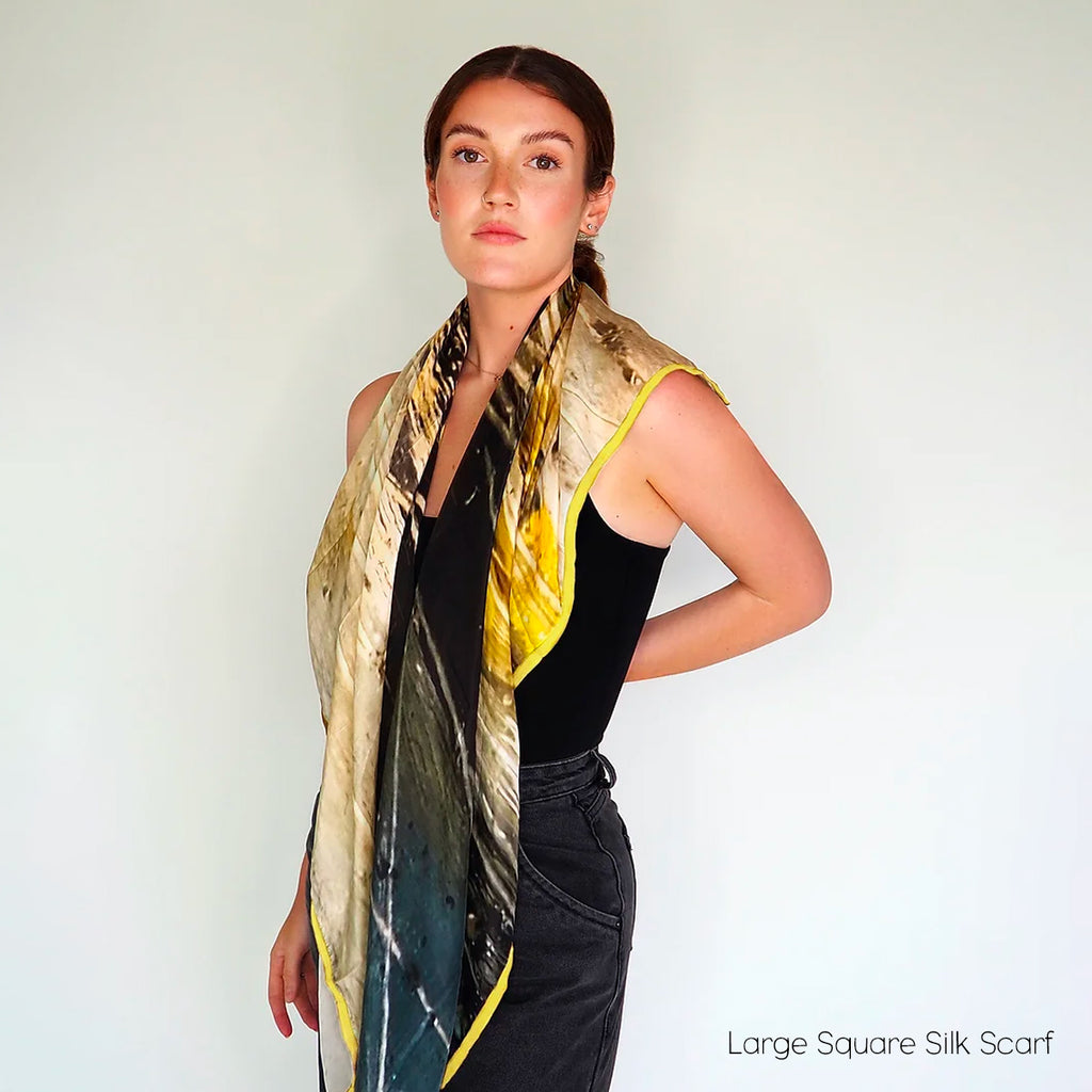 Large Square Silk Scarf - 100% silk with silk chiffon trim, 130 x 130cm