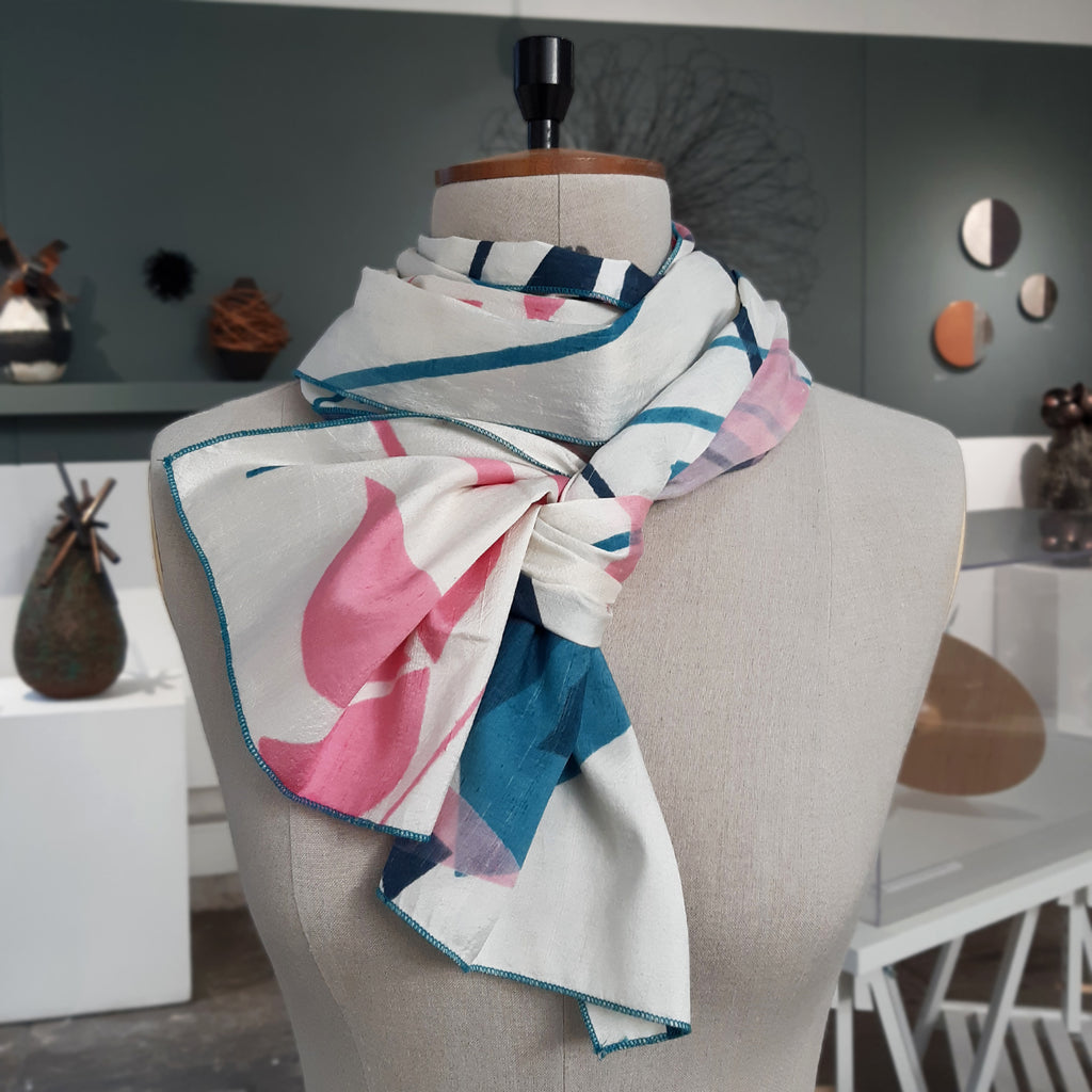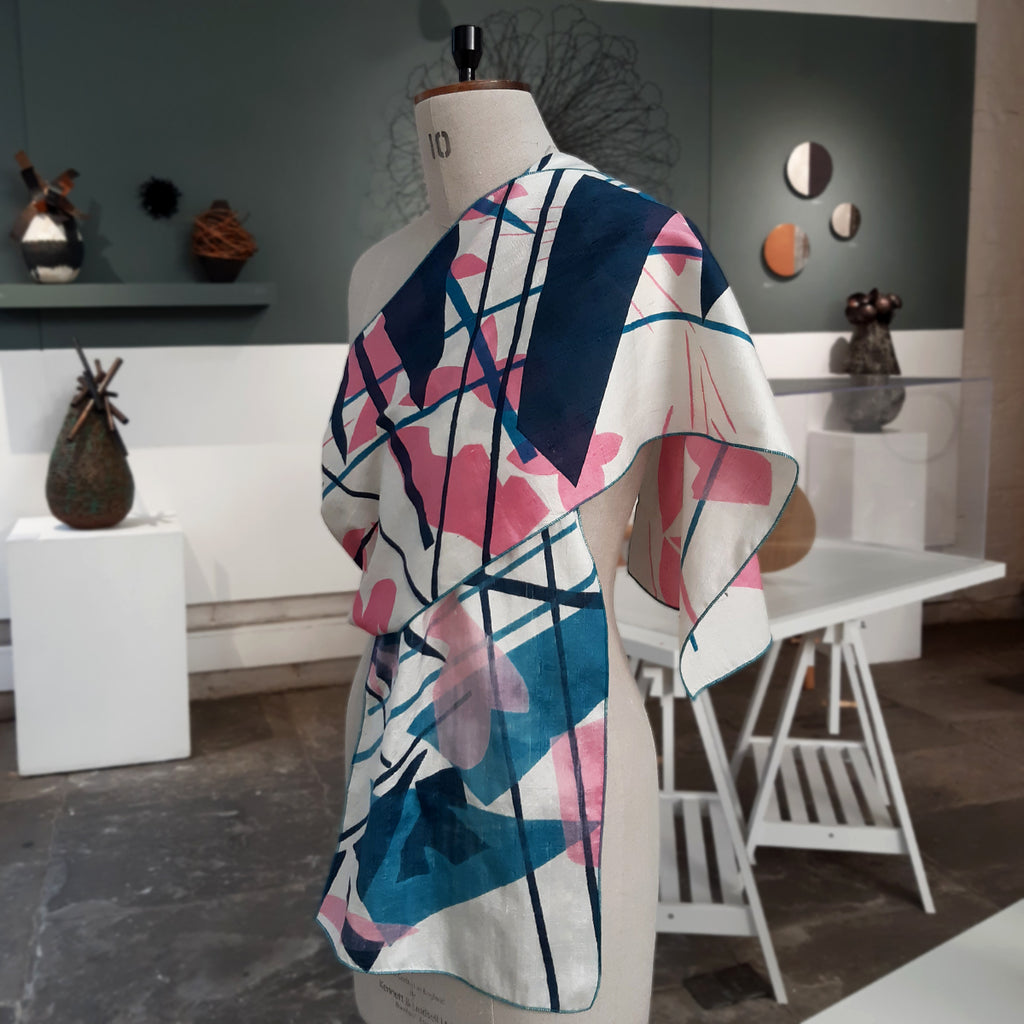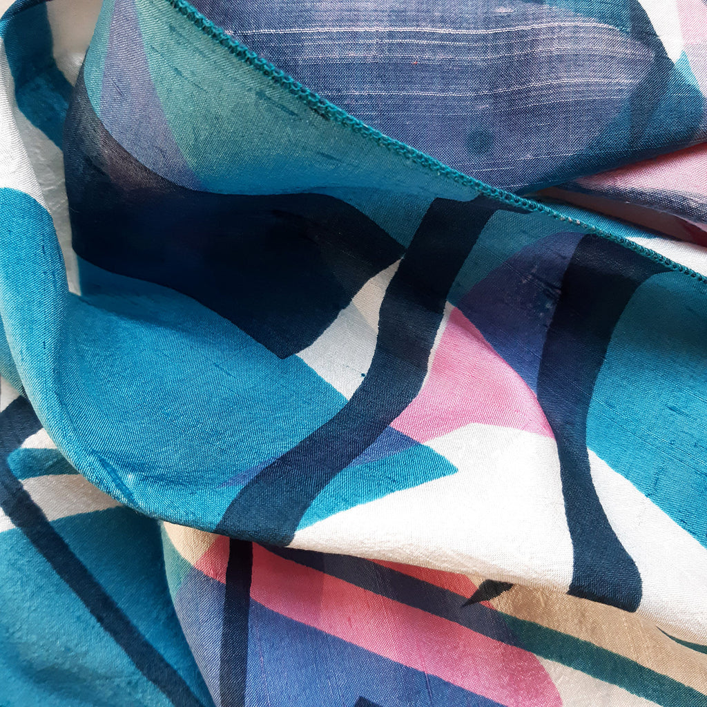 Pink, Black & Turquoise Silk Scarf by Dino Soteriou
