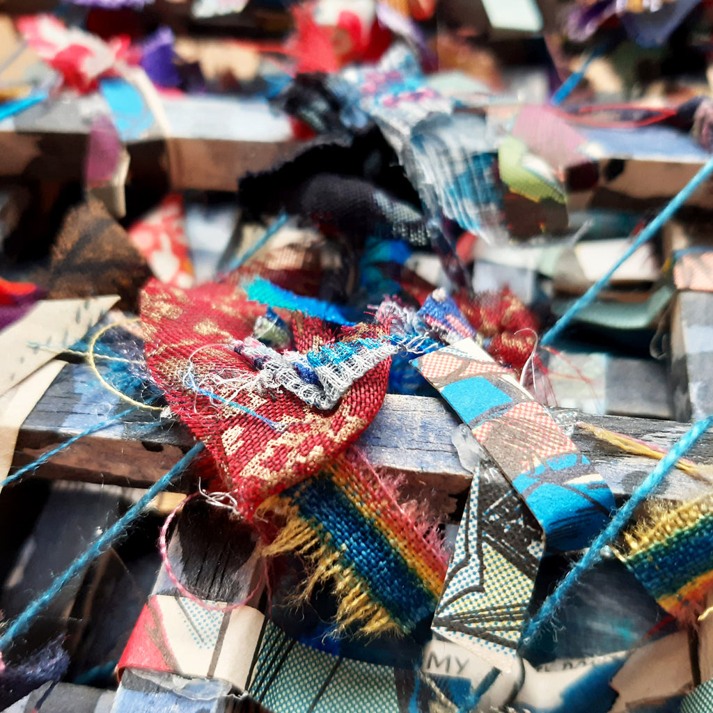 Michael works in particular with embroidery, pattern, lace and recently floral imagery in the form of wall pieces, as well as brooch accessories. The works are colourful, dramatic, rhythmic and possess intense detail. He explores and develops techniques, inventing many new and imaginative ways of integrating textiles with other media.
