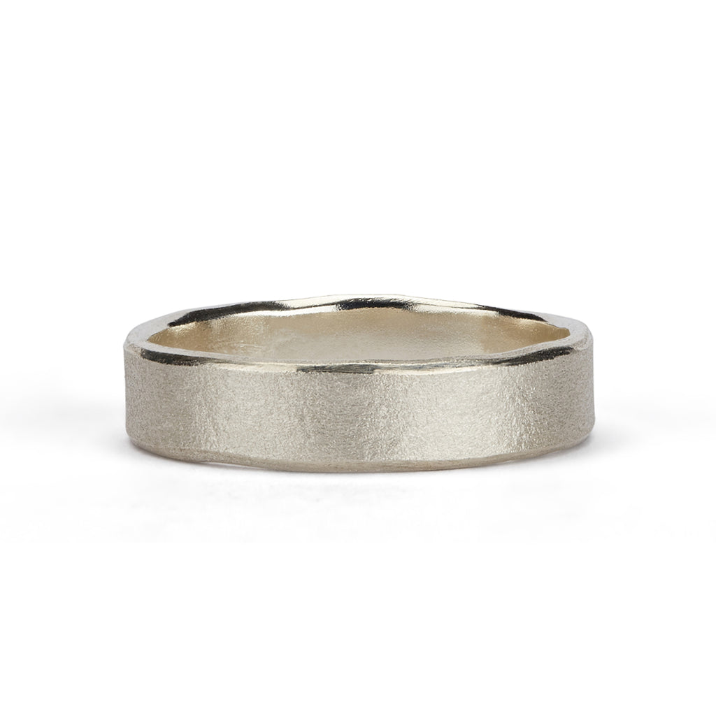 This beautiful handforged wedding ring is made in 9ct white gold, with a soft matt texture.